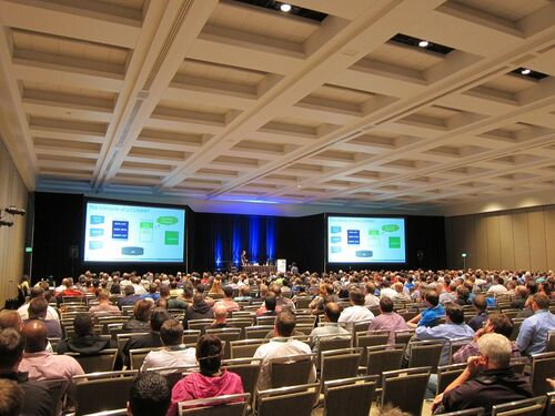 PASS Summit 2014 では、5,899人の参加者をさばくために 16パラレルで 200以上のセッションが走っています。 2番目に大きい部屋がこちら(↓) 人気の Bob Ward さんのセッション中で、これだけで軽く 1,000人は入っているような... この大きさの部屋があと2…